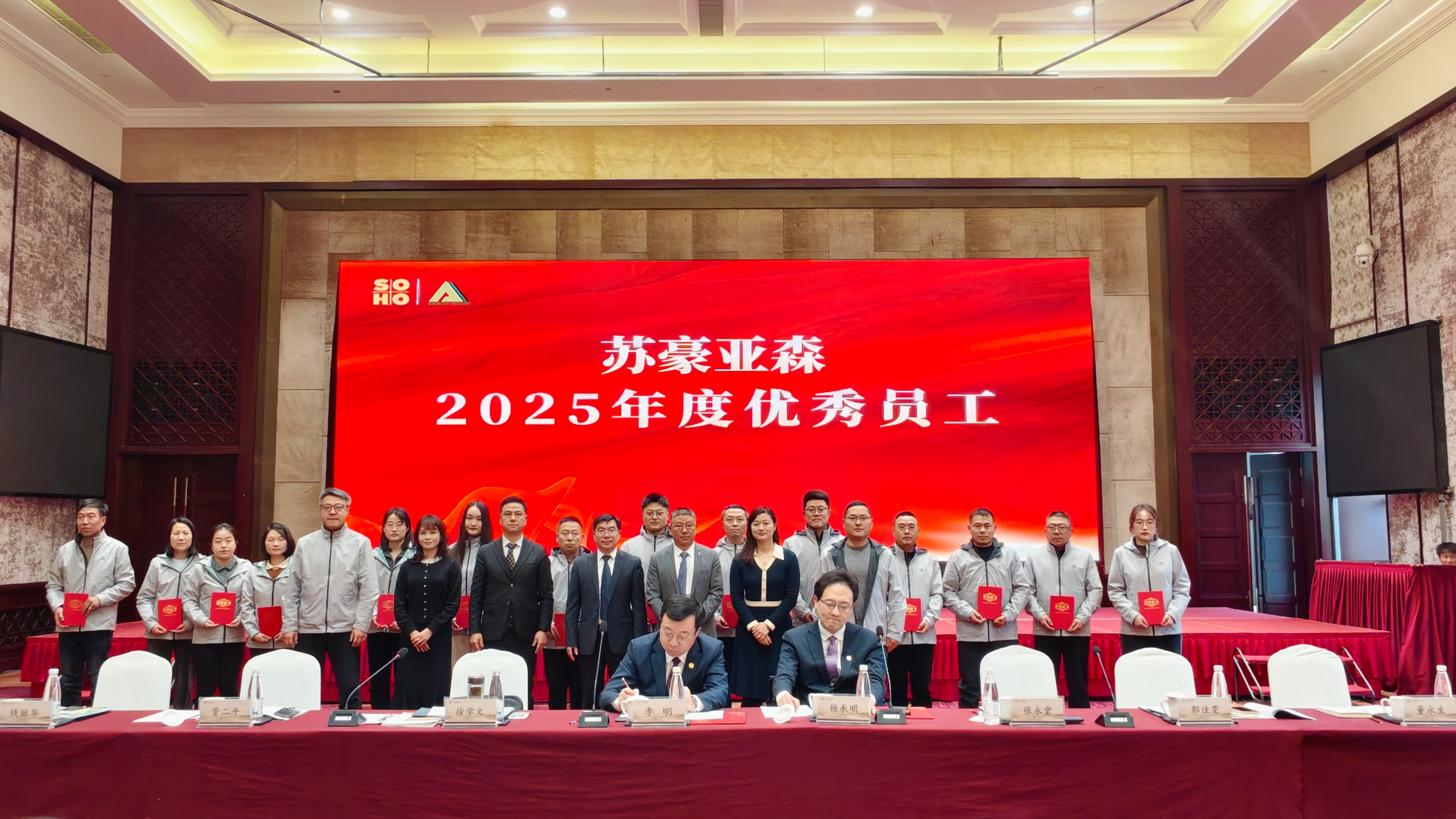 1月31日下午,我司召开2025年度总结表彰大会。苏豪控股集团副总裁、党委委员李明,苏豪汇鸿集团党委书记、董事长杨承明出席会议并发表讲话,公司全体员工参加会议。会议由公司党支部书记、董事长徐学文主持。